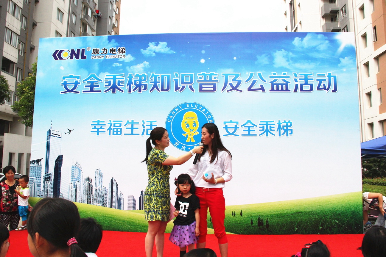 湖滨华城安装有200多台PA官方平台,且入住率高,居民对了解电梯安全知识热情度十分高,活动现场吸引300多位居民主动参与。“轿厢到了,先下后上,大家省时间;进出轿厢,不要停留,别阻碍关门。万一被困,不要惊慌,更不要扒门;联系外界,说明情况,等专业人员;自动扶梯,小心夹缝,不要跑着玩;小孩乘梯,大人牵手,细心保安全……”一首节奏明快,朗朗上口的《电梯的心愿》,唱出了安全乘梯、文明乘梯的规范。“每个乘客都平安,是电梯最大的心愿,大家平时又是怎样乘坐电梯的?”随着主持人的开场问题,电梯安全知识普及公益活动正式开始。