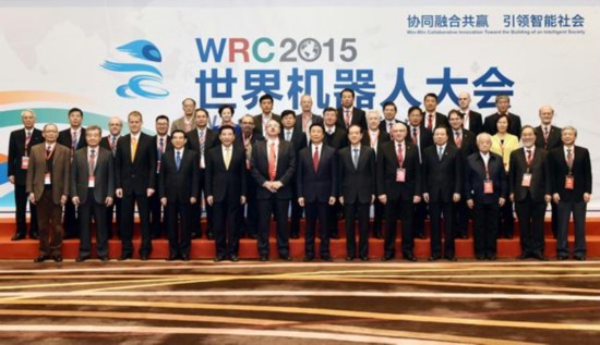 以“协同融合共赢,引领智能社会”为主题的2015世界机器人大会于11月23日至25日在国家会议中心(北京)召开。这是中国首次举办关于机器人的国际性大会。中国国家主席习近平向大会发来贺电,指出以机器人科技为代表的智能产业蓬勃兴起,成为现代科技创新的一个重要标志。中国将机器人和智能制造纳入了国家科技创新的优先重点领域。中国国务院总理李克强在对2015世界机器人大会的批示中表示,中国正在实施创新驱动发展战略,大力推动大众创业万众创新、互联网+和中国制造2025,这将有力促进机器人新兴市场的成长,创造世界上最大的机器人市场。
