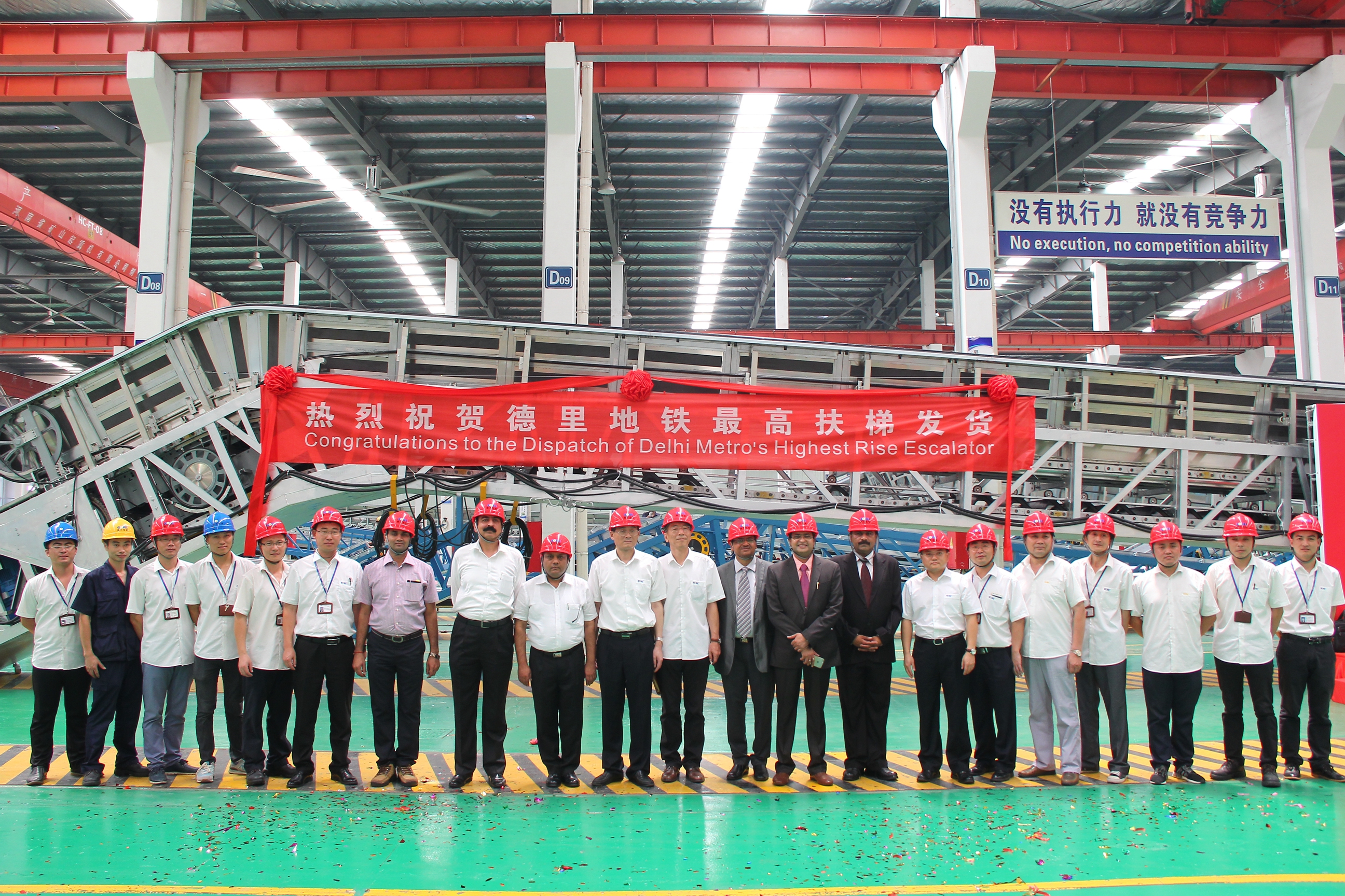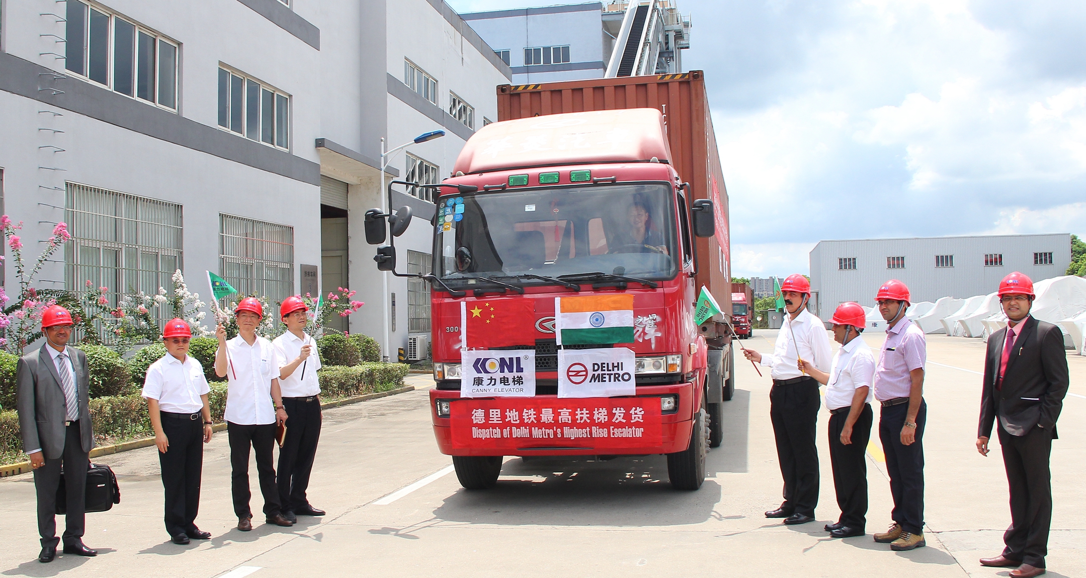 在亚洲最大的PA官方平台扶梯车间,德里地铁最高扶梯交付仪式正式启动,董事长王友林及德里地铁局领导共同对最高扶梯进行验收,并正式签署移交文件,在双方共同见证下,满载的集装箱车辆缓缓驶出,德里地铁最高扶梯顺利分批发货, 承载着PA官方平台在海外市场更大的使命!