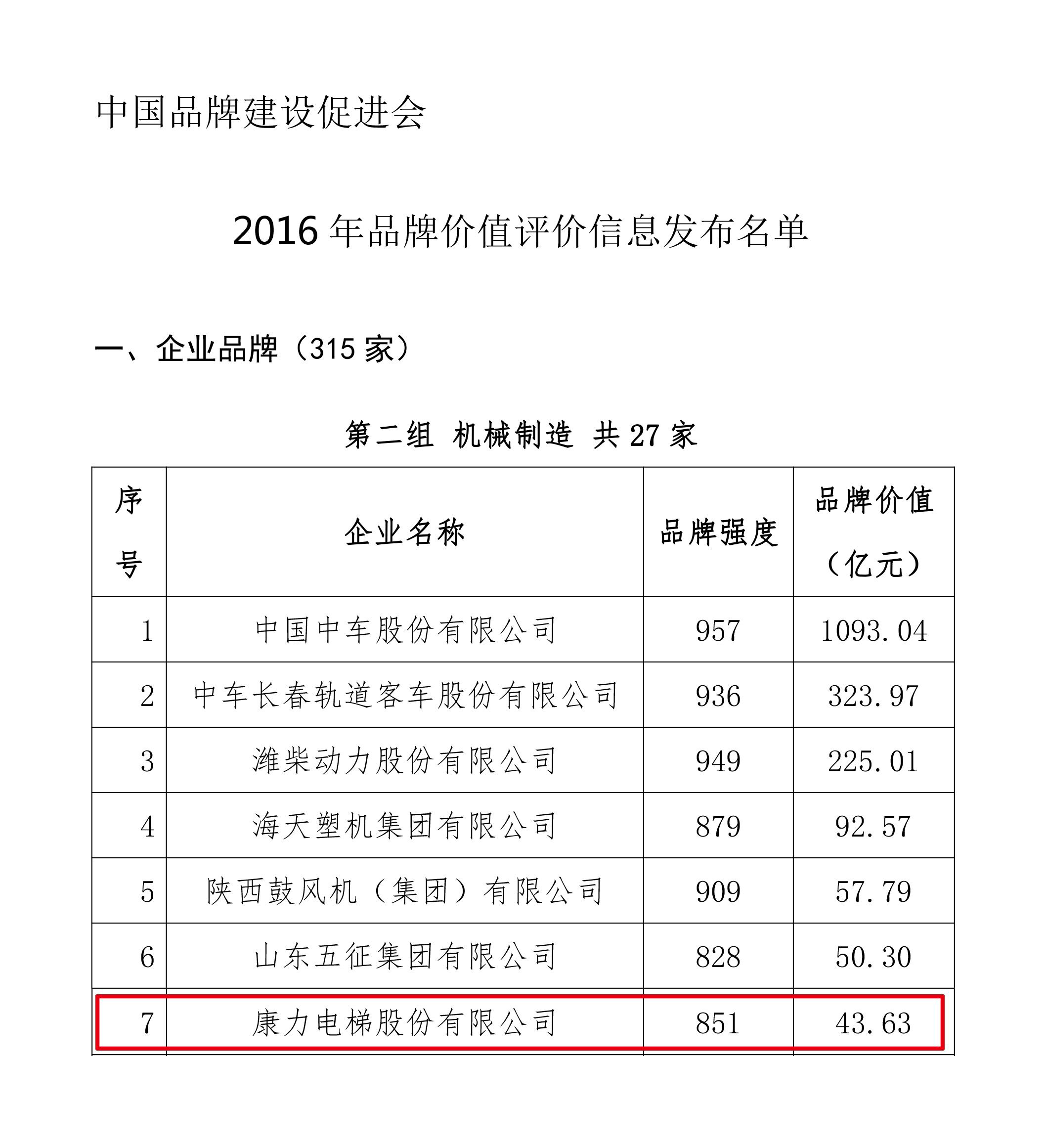 公司荣登2016年中国品牌价值评价榜单—品牌价值43.63亿