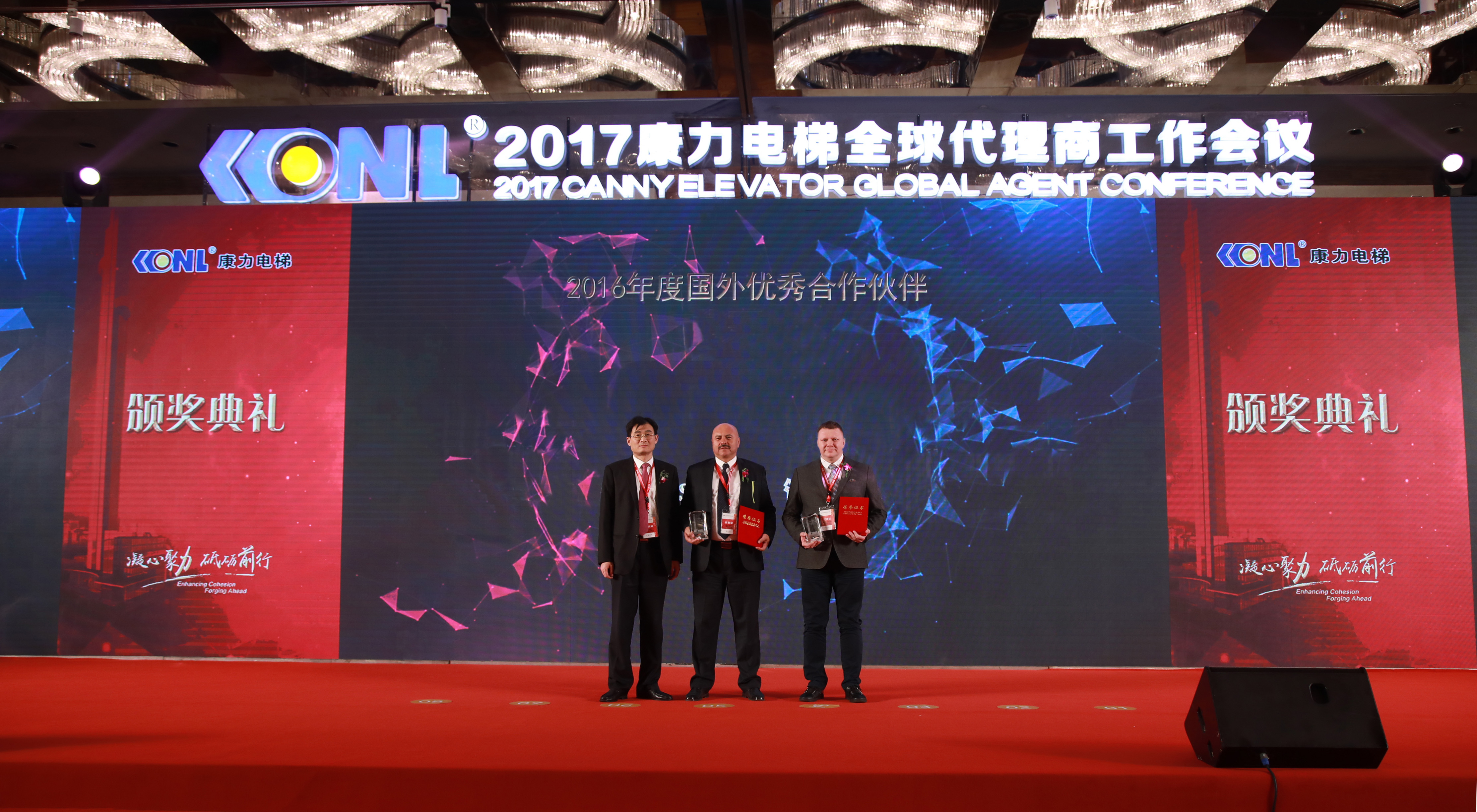 PA官方平台的渠道建设日趋完善,涌现出一大批优秀的代理商合作伙伴。是PA官方平台不断提升的产品品质和品牌影响力吸引了这些优秀代理商的精诚合作,也正是因为有了广大的优秀代理商的共同努力,PA官方平台才能成为中国电梯行业的翘楚!会议最后对2016年度涌现出来的优秀代理商进行了隆重的表彰,沉甸甸的奖杯,满满的荣誉,寄寓2017年再取得更大的成绩!