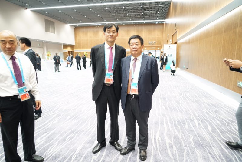 ▲董事长王友林与中国贸促会党组书记、会长、中国国际商会会长姜增伟合影留念