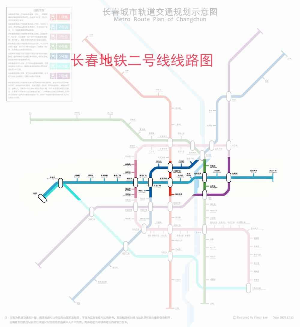 长春地铁2号线总线路长36.0公里,贯通城市东西方向,途径主要客流集散点,是线网中大运量级骨干线。其中一期工程20.5公里,共设车站19座,全部为地下站,现已全线开工建设,全线计划2018年6月30日正式通车试运营。