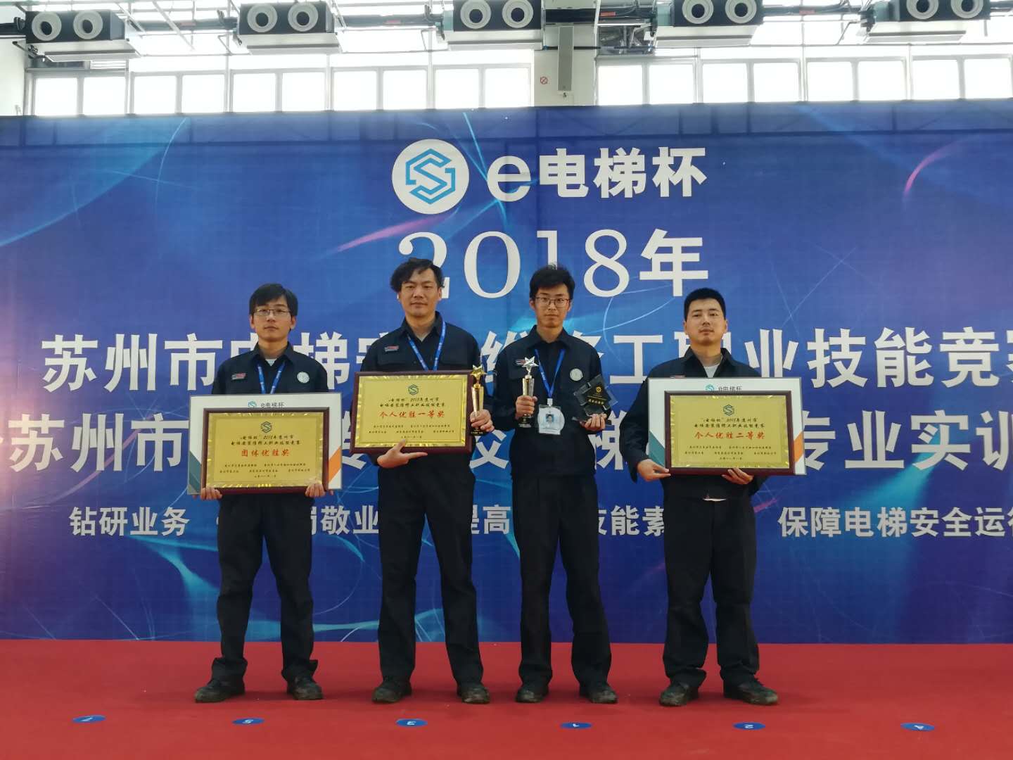 8月5日下午,由苏州市质监局、苏州市人社局、苏州市总工会、共青团苏州市委、苏州市职业大学联合主办的“e电梯”杯2018年苏州市电梯安装维修工职业技能竞赛暨苏州市大中专院校电梯相关专业实训比赛落下战幕。这场为期两天的比赛,吸引全市37支专业队同场竞技,其中既有众多知名电梯企业的安装维修专业团队,也有苏州市职业大学电梯学院和江苏省吴江中等专业学校的专业学生队伍。为了让技能操作更“接地气”,所有参赛队除参加以国家职业标准三级(高级工)为基础的考核外,主办方还邀请行业专家围绕近年来电梯运行的常见问题,增加对参赛者新知识、新技术掌握程度的考核。