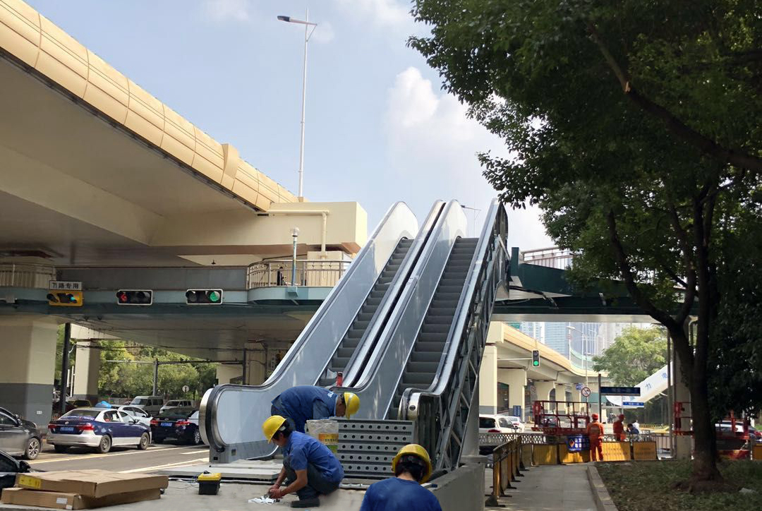 位于上海延安中路陕西南路口及石门一路口的人行天桥建成多年,原只配备步行楼梯,行动不便群体无法使用,目前正进行现代化无障碍改造,安装10台由PA官方平台设计制造的公共交通型自动扶梯,预计2018年底投入使用。
