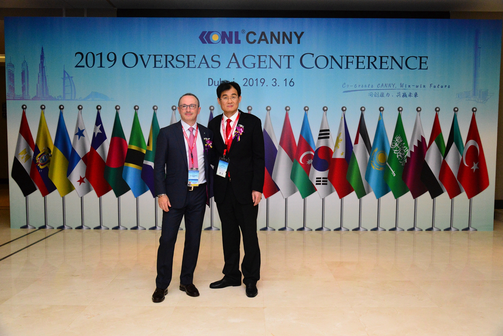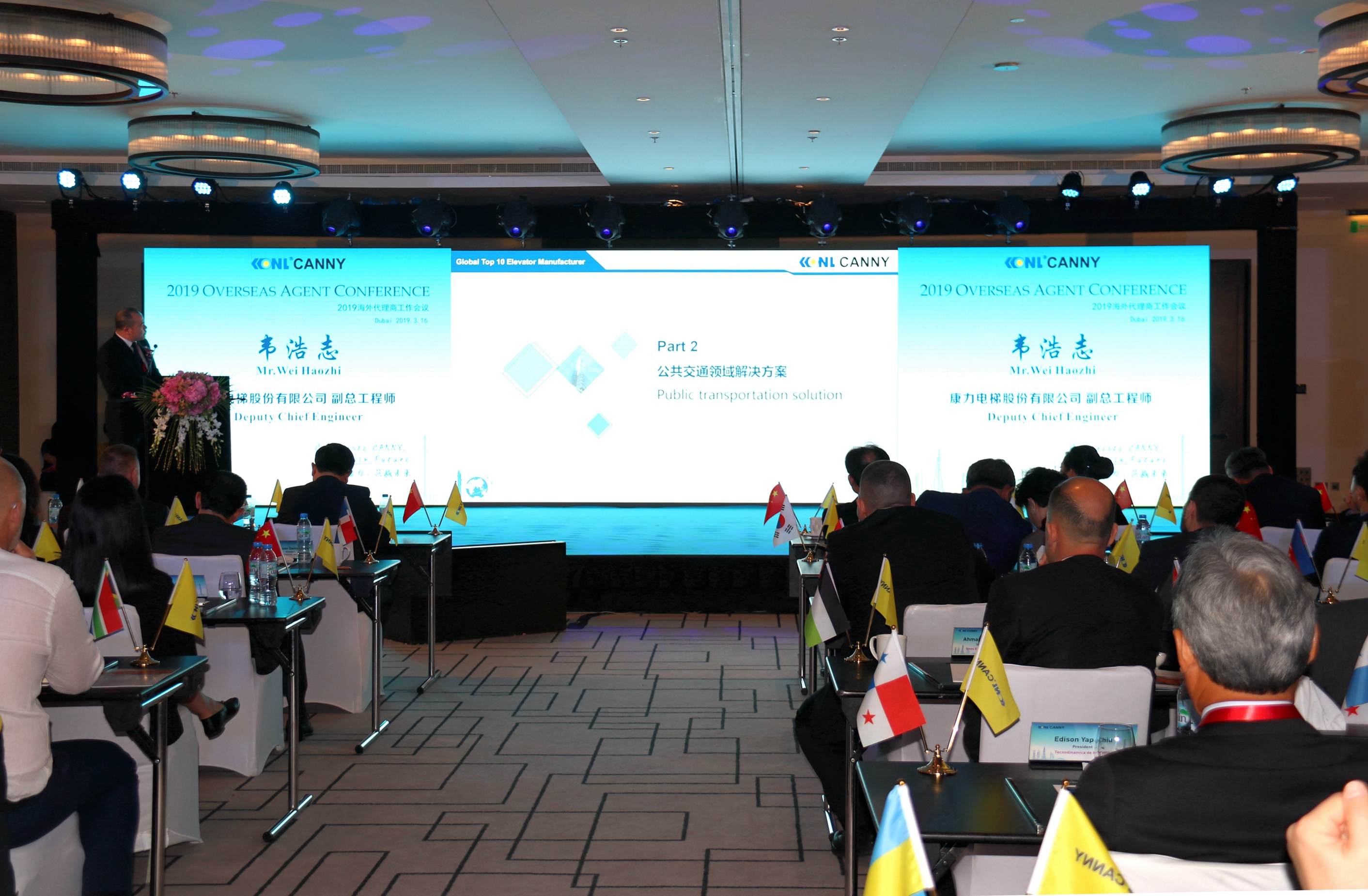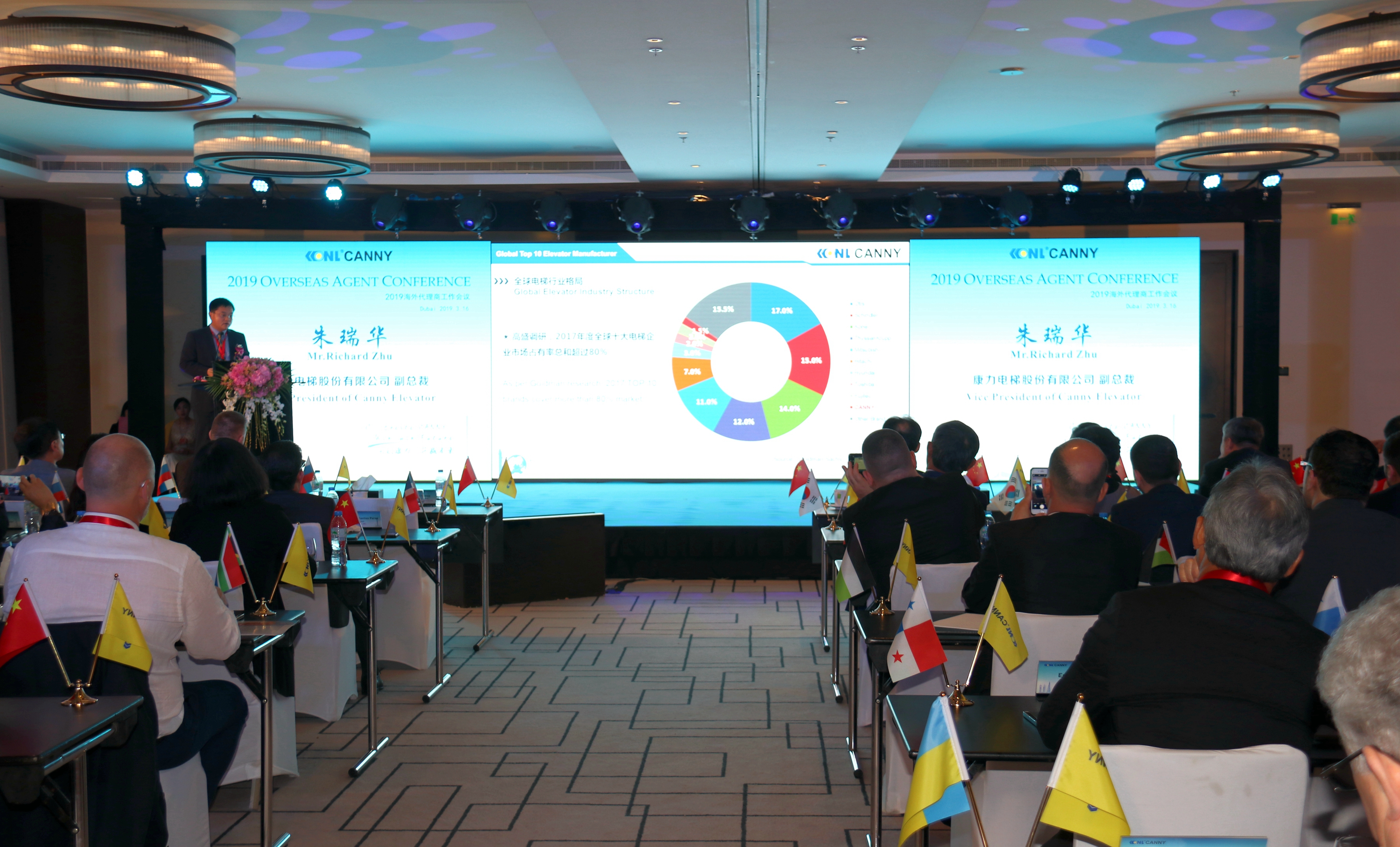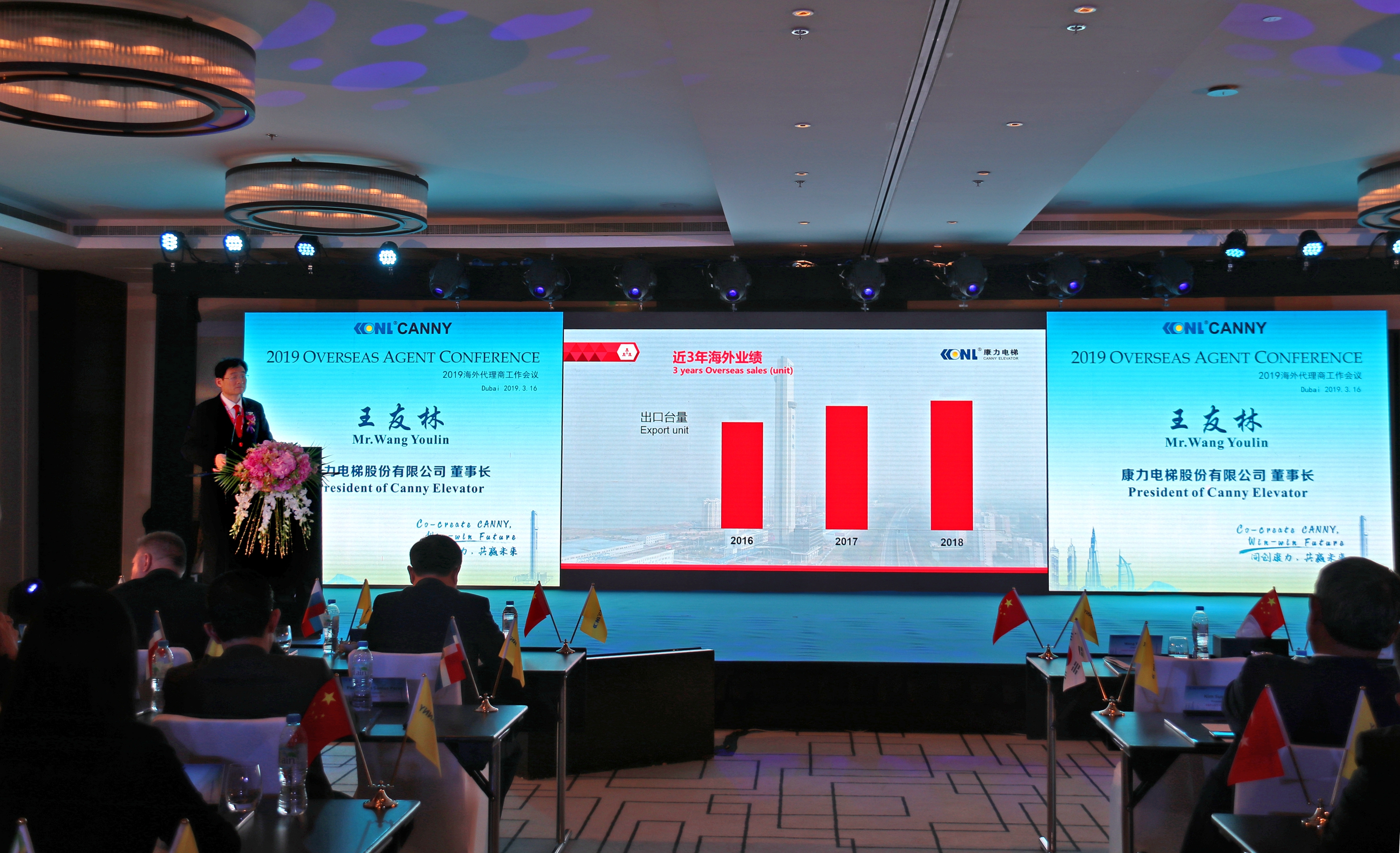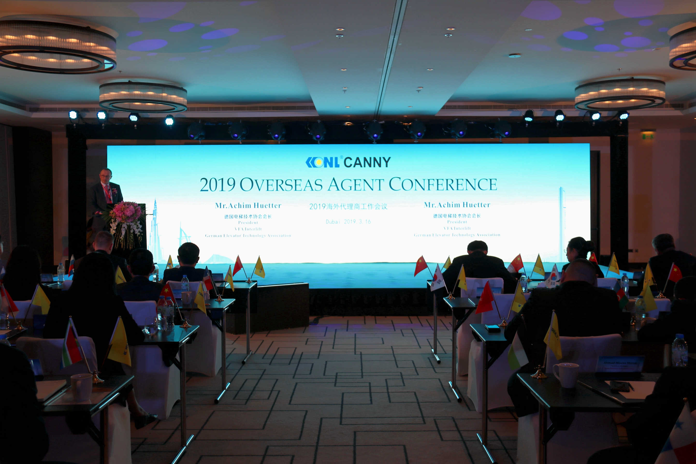 3月16日,PA官方平台董事长王友林及夫人,中国电梯协会秘书长张乐祥,中国建筑科学院发展处处长宫剑飞博士,德国电梯技术协会、VFA-Interlift会长Achim Huetter,PA官方平台副总裁朱瑞华等公司领导、行业嘉宾及国际业务精英团队,与来自五大洲的海外核心代理合作伙伴一行90余人齐聚在欧亚非的十字路口--阿联酋迪拜,共同出席2019PA官方平台海外代理商工作会议,分享收获、展现荣光、坚定信念、共赢未来。