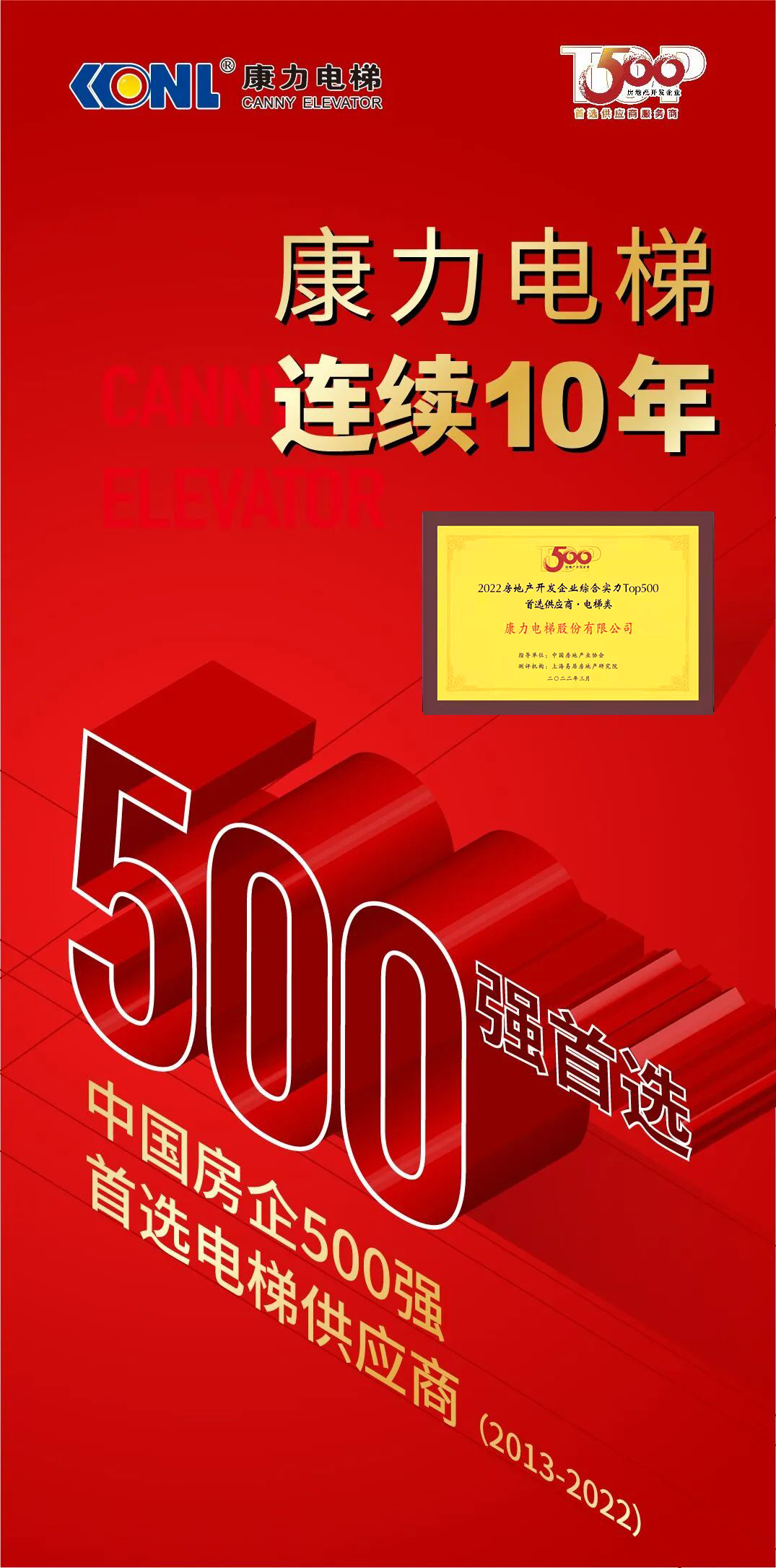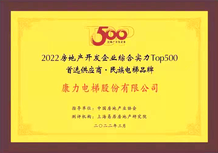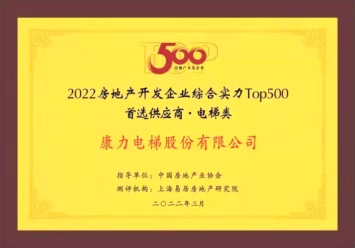 公司连续第10年登榜“房地产开发企业综合实力TOP500首选供应商·电梯类”(2022年高居前4),是行业唯一自2013年起连续登榜的中国品牌,实力领衔中国电梯业高质量发展。